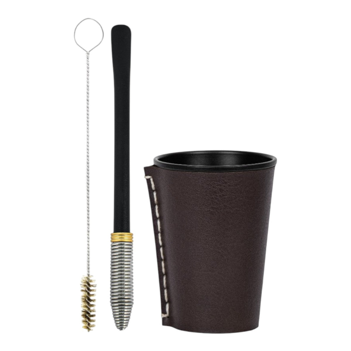 Kit Bomba Mola Cônica e Copo Tereré Alumínio com Acabamento em couro Sintético
