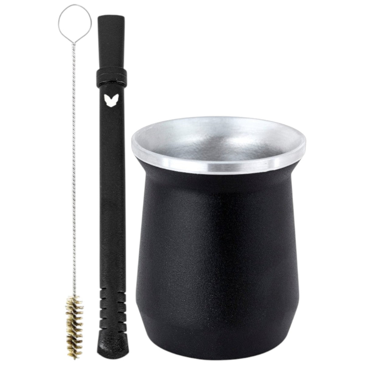 O Copo Cuia Alumínio Classic Preto, com 236ml de capacidade, é fabricado em alumínio escovado de alta durabilidade, com acabamento fosco que garante leveza e conforto no uso, sem transferir gosto ou cheiro.